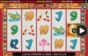 The dragon wilds also have the power to activate the Eastern Dragon bonus game when two of the symbols are collected simultaneously on reel one and five. When this happens, the slot will activate a bonus of 15 free spins which are played with a default payout multiplier of 3x for any prize collected during them. The free spins can be also re-triggered by landing another pair of dragon wilds for a second chance at collecting some bonus wins.