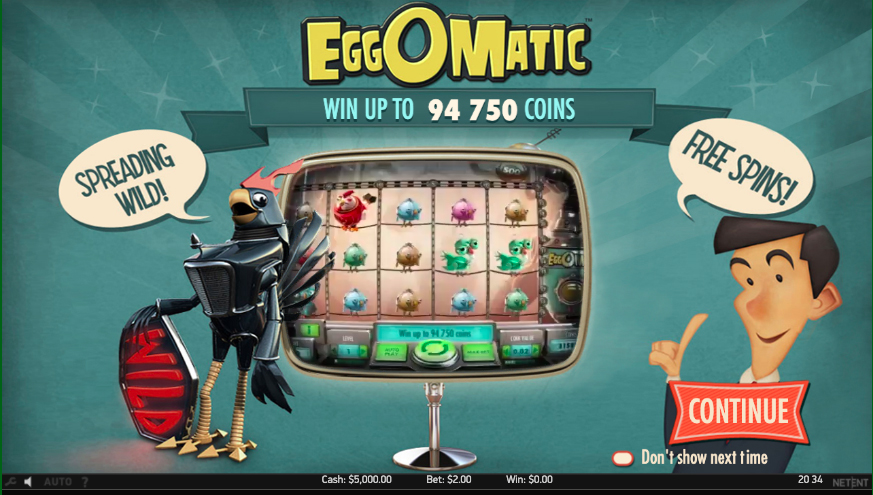 The music in this game is alright, but quite forgettable. Eggomatic’s RTP is 96.48%, which is higher than the current average. All available special features tie back to the eggs the large machine creates. They appear on the conveyor belt above the reel, and can award useful prizes! Eggs can grant spreading Wilds, free spins, or coin win bonuses if the right conditions are met! Your maximum prize is 1000x your total stake.