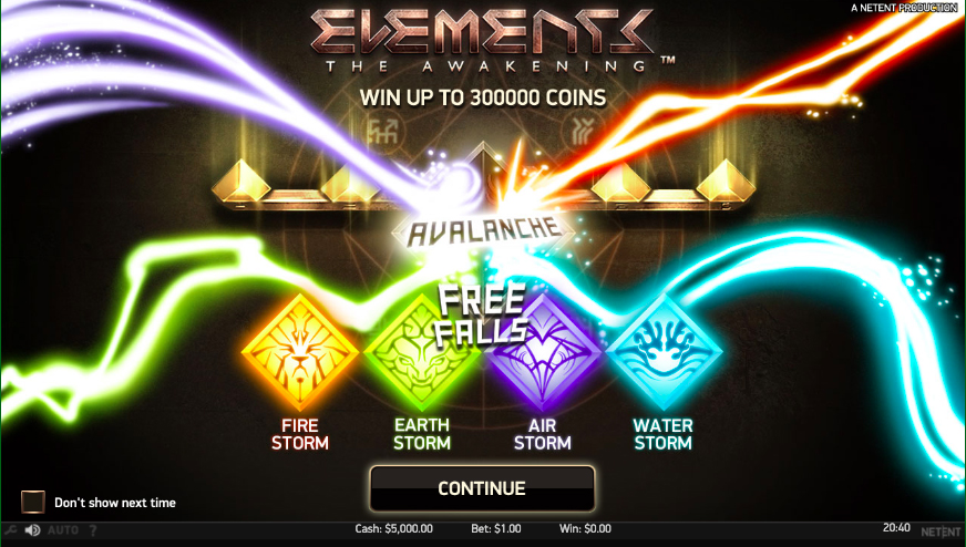 Free Falls: After collecting four or more Avalanche special features, players win ten free spins. Which type of free spins you play is determined by what the dominant element was when the bonus was triggered. There are four in total, and they include: